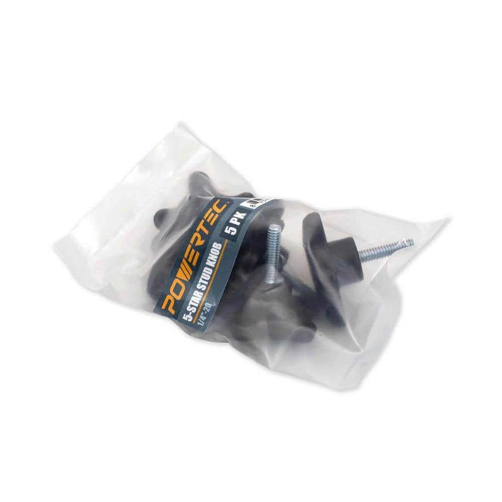 Introducing the 5 Star Stud Knobs by POWERTEC. These multi-functional studded knobs provide you with reliable fastening action for an assortment of general purpose clamping projects. They not only give you increased torque, but simply mount these knobs into a threaded hole, and they’ll give you optimal control and gripping action to secure your applications. The user friendly build allows you to utilize a secure hand-grip to position, tighten and hold your equipment, jigs, fixtures and machinery. These will also eliminate the need to purchase separate heads and studs that ultimately pull out of the handle when tightened down.