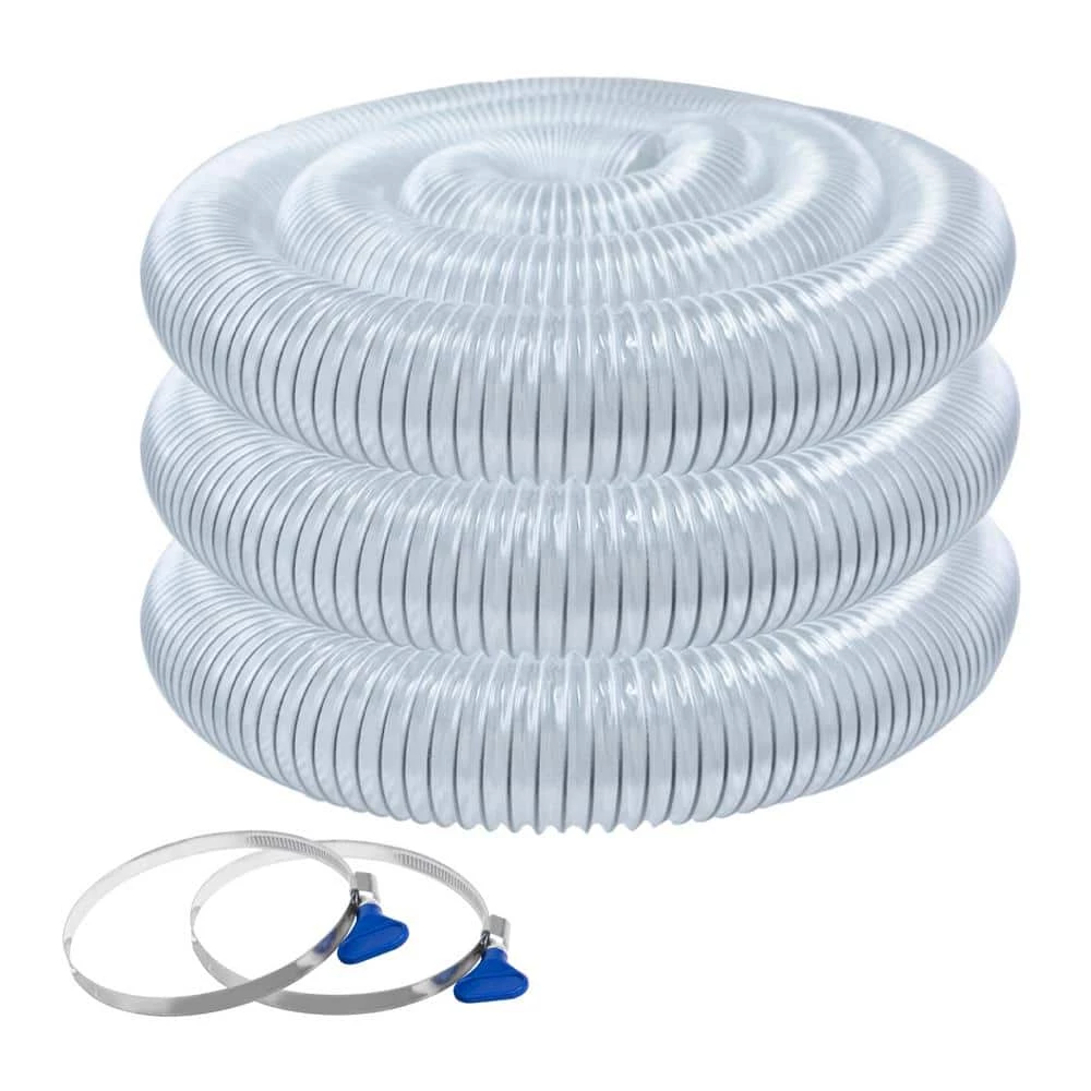 - INCLUDES: (1) 2-1/2 in. x 20 ft. transparent dust collector hose and (2) thumb screw 2-1/2 in. key hose clamps