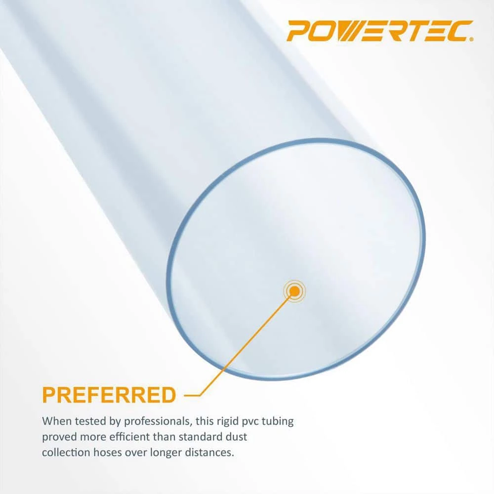 The 2-1/2 in. x 36 in. Long Clear Pipe by POWERTEC: Our 36 in. long clear plastic pipe was designed to work with hoses and/or ports with 2-1/2 in. ID – providing a highly efficient extension tube or foundation for your dust collection system. Made with top grade PVC plastic, this tubed fitting possesses a lightweight, yet rigid profile ideal for an assortment of dust collection system and woodworking applications. It’s tough, stable and features exceptional impact resistance for day to day usage. Chosen by the experts: When tested and compared to standard dust collection hoses, many professionals preferred this rigid piping material for long distance dust collection and improved workflow. Additionally, the transparent, see-thru profile allows the user to view the efficient air flow of dust providing optimal dust extraction. Spec:2-1/2 in. O.D. for fit onto your 2-1/2 in. dust hose, couplers or fittings. Pipe length: 36 in. Weight: 13 oz. Wall thickness: 5/64 in.