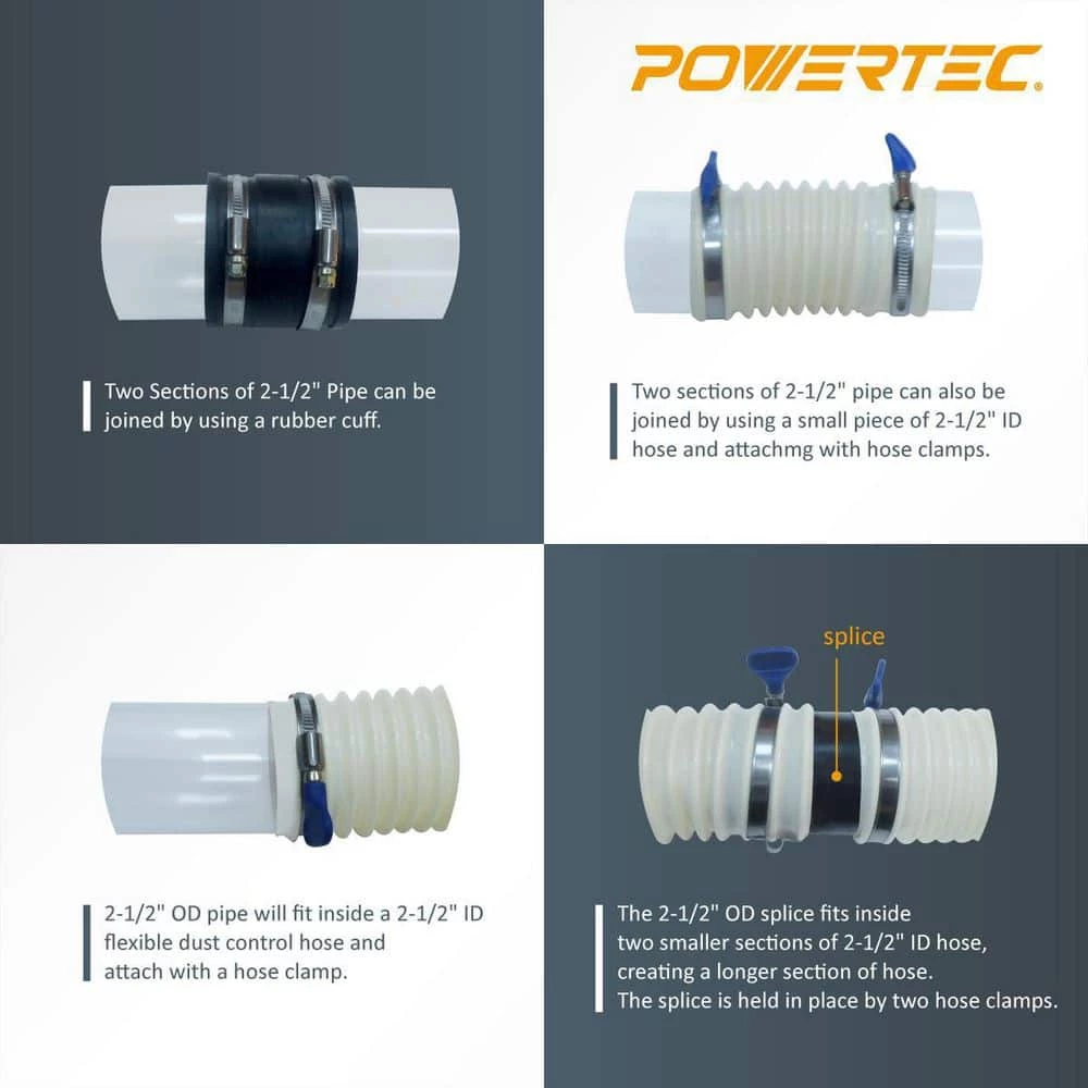 - APPLICATIONS: Designed to work with ports and hoses with 2-1/2″ I.D. – can be used in conjunction with couplers to form an extension or foundation for dust collection systems (see description for components to connect 2-1/2″ fittings)