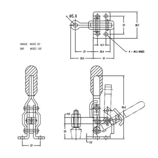 - DESIGN: This heavy duty vertical toggle clamp is constructed from cold-rolled carbon steel, possessing a low profile design, a flanged base, and colored vinyl grip for easy identification