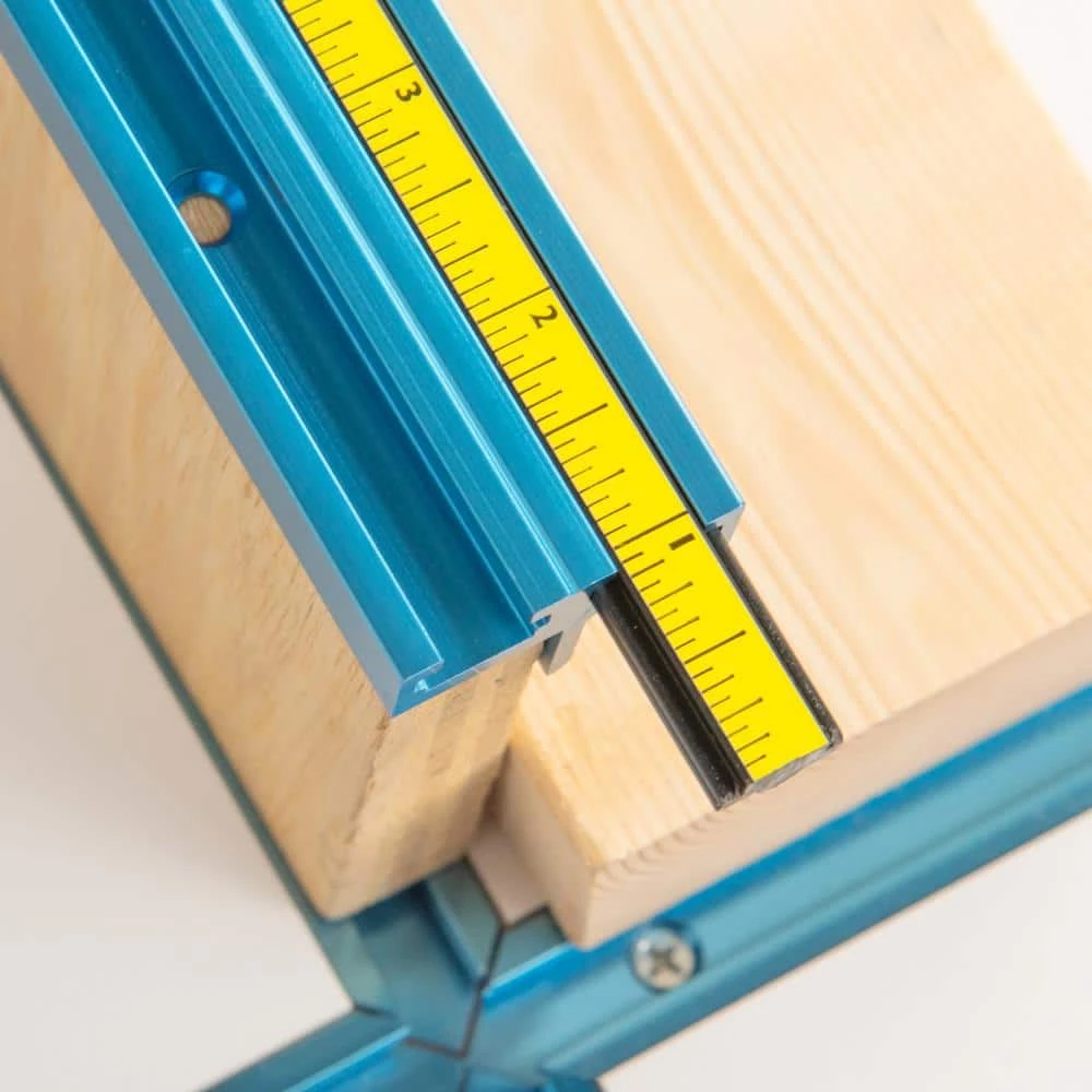 - Feature: universal mounting for any 3/4 in. auxiliary or sub fence with vertical support leg, plastic insert with scale fits any double cut or universal style t-track, right to left measurement reading (indexed every 1/16 in.), and an acrylic cursor with an adhesive backing that can be attached to the flip stop