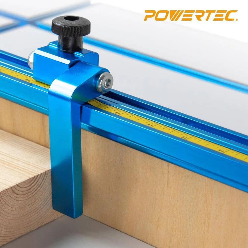 Introducing the Aluminum Double T Track by POWERTEC. Max the power of your jigs and fixtures with this fence top t track for woodworking shop use. The dual t-track is an extra thick, rigid extrusion that provides 2 t-tracks in a single solid component. This new and innovative t-track tool allows you to easily customize and assemble your t-track accessories with precision and ease. Convenient Fence Top Optimization This ingenious dual-track component is meant to be fastened onto the top of your 3/4 in. auxiliary fence via a rugged and dependable integrated fence cap – a vertical support leg that sets securely and flush against your fence. Use on your router table or your miter saw or table saw or band saw table or drill press table and more. 2 Tracks for Unlimited Possibilities in Your Jigs and Fixtures The first track provides easy and versatile placement/attachment options for a wide variety of helpful t-track accessories, such as stops and clamps and fixtures. Easy Precision Thru and Thru with Included T-Track Tape, additional track is designed to accept a t track tape measure that allows you to set your stops and other accessories with the utmost precision. The included adhesive-backed steel tape measure is indexed every 1/16 in. Easy Installation for the DIY and Professional Woodworker Alike Convenient pre-drilled holes, that accept a #8 flat-head screws, ensure you a quick and easy installation. Works great with T track stop track flip stop – fence flip stop track clamp.