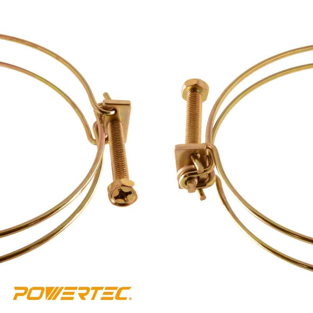 Introducing the 4 in. Double Wire Hose Clamp (10-pack set) by POWERTEC. These clamps are designed to provide a quick and secure attachment for your dust hose to your dust collection fittings. Whether you’re just starting to assemble your dust collection system or in need of replacement hose clamps – these 4 in. wire hose clamps are an essential tool to connecting your piping to your blast gates, dust hoods and fittings. Easy-To-Use:- Simply tighten these clamps by turning the screw with a Phillips screwdriver or hex head wrench. Double Effective:- They feature a steel spring double loop construction, distinctively designed to deliver an impressively tight grip on suitably sized hoses, securing them in place, while maintaining a consistent pressure. Specifications:- Material: Carbon Steel, Clamping Capacity: 2-3/8 in. ~ 2-3/4 in., Finish: Zinc Coating.