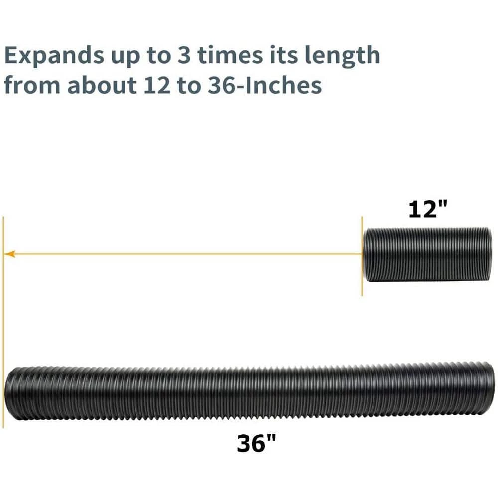 - APPLICATION: An expandable dust collection hose that extends up to 36 inches (3ft), and possesses the ability to bend, twist, and snake into a variety of positions for optimal project versatility. Ingenuous segmented design means it will maintain desired rigidity when dust collecting in hard to reach areas, thus maintaining optimal air flow to your dust collector.