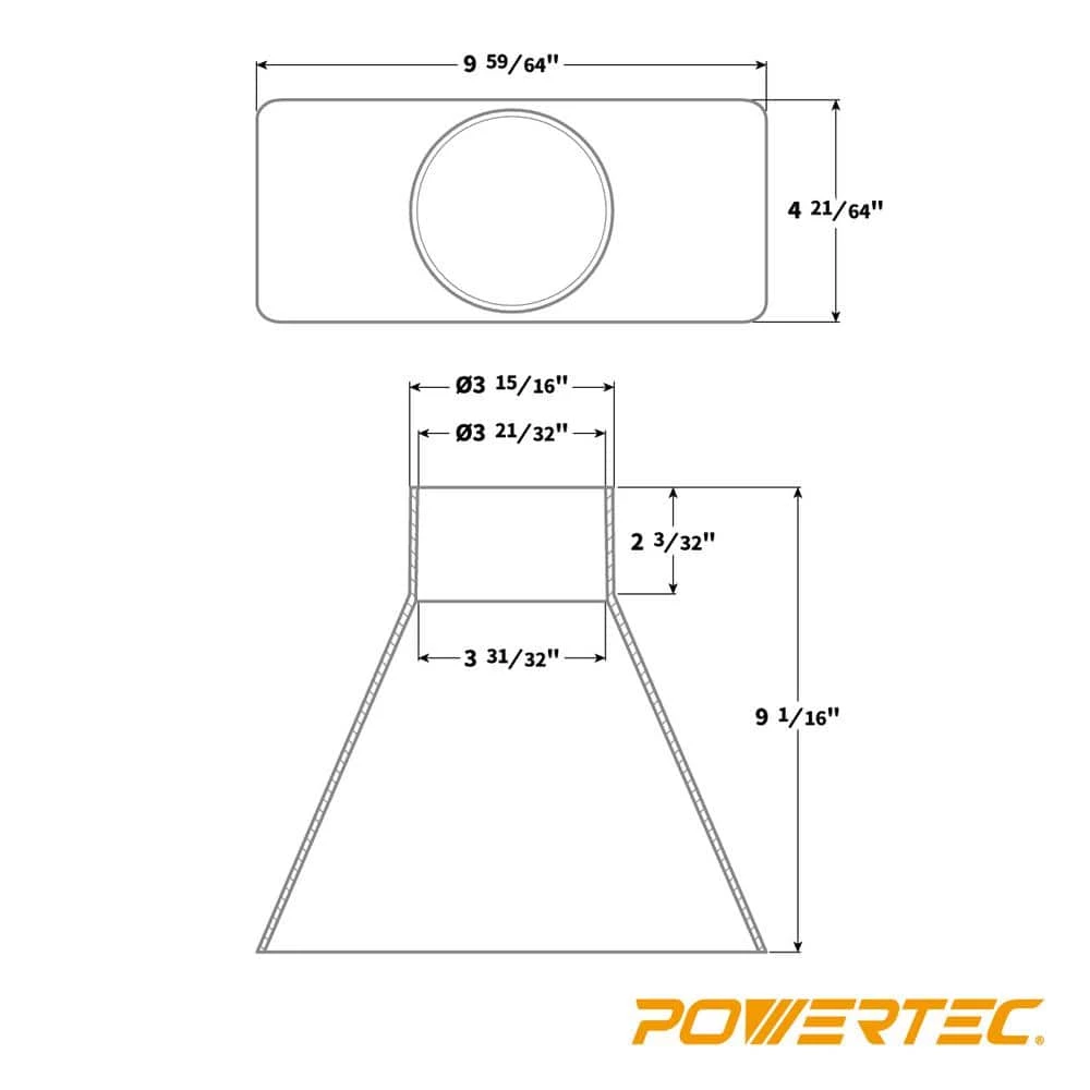 Introducing the 4″ Rectangular Dust Hood by POWERTEC. This dust hood is designed to provide you with an easy-to-use wide mouth dust collection attachment. Not only does it capture a sizable area of dust and debris, but offers a handy – ergonomic design that can be placed in multiple positions for almost any dust collection requirement. It’s intended to work with a variety of machines and can be placed on top of a table/bench near the area where dust is being produced. The dust hood has a standard 4-inch port with a slightly tapered end to accommodate 4″ ID dust hoses. Premium Design and Construction – This dust collection dust hood possesses an interior funnel design. These ABS fittings also possess high tensile strength, abrasion resistance and durability – perfect for most workshops that deliver exceptional woodworking and professional quality results. -Package Contains- (1) Dust Hood Collector attachment -Dimensions- Overall size is 10″ (across) x 4″ (opening) x 9″ (deep). Please Note: For some flexible dust hoses, hose clamps may be required (not included).