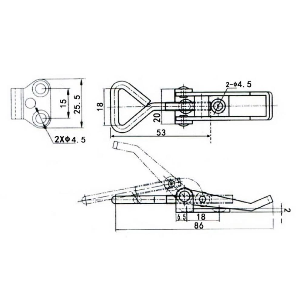 Designed, constructed and rigorously tested to meet your most demanding workshop requirements, the POWERTEC latch-action toggle clamp provides the secure, straight-pulling action that is essential in a multitude of woodworking, automotive, construction and home-based projects. Its sturdy, non-distorting hold ensures the protection and/or attachment of your valuables, allowing you to focus on getting things done – quickly and with ease. Vinyl colored grip for easy identification and comfort. Zinc-plated coating for corrosion resistance. Featuring both strength and adjustability with its elegantly designed and streamlined latch-mechanism, this handy accessory will make your work on medium-duty woodworking and construction projects, a breeze. Ideal for use on doors, machinery, automobiles, Jig assemblies and other medium to heavy-duty job applications. Clamp base: 1-1/4 in. x 1-7/8 in. mounting slots: 3/16 in. Dia. Clamp adjusts from 1-1/8 in. (distance from latch plate to clamp base) to 2 in. Clamp height when clamped: 5/8 in. Total length range, including handle, when clamped: 4 in. – 4-3/4 in.