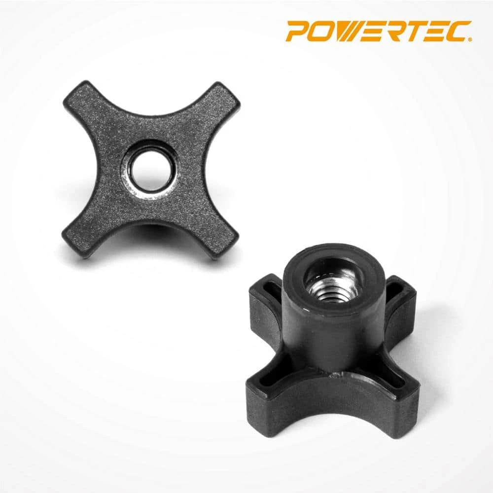 The POWERTEC QNB3003 4-Point Thru Knob, 5/16″-18, 5PK, is the essential tightening and adjusting solution for your homemade workshop jigs/fixtures, feather boards and precision saw fences, or in any other applications where a 5/16″-18 thru knob will fit the bill.Ergonomic and large, this convenient accessory allows for easy and quick tool-less adjustment. Featuring a comfortable and secure hand fit that insures the user maximum leverage, control and agility.The tightly molded-in zinc-plated insert is hard working, long lasting and won’t strip, even with over-tightening. Many woodworkers like to have a few extra on hand because of their usefulness. Knob is made for rugged durability.Great for use as replacement accessory. Streamline your workflow and enhance woodworking outcome with this efficient knob.