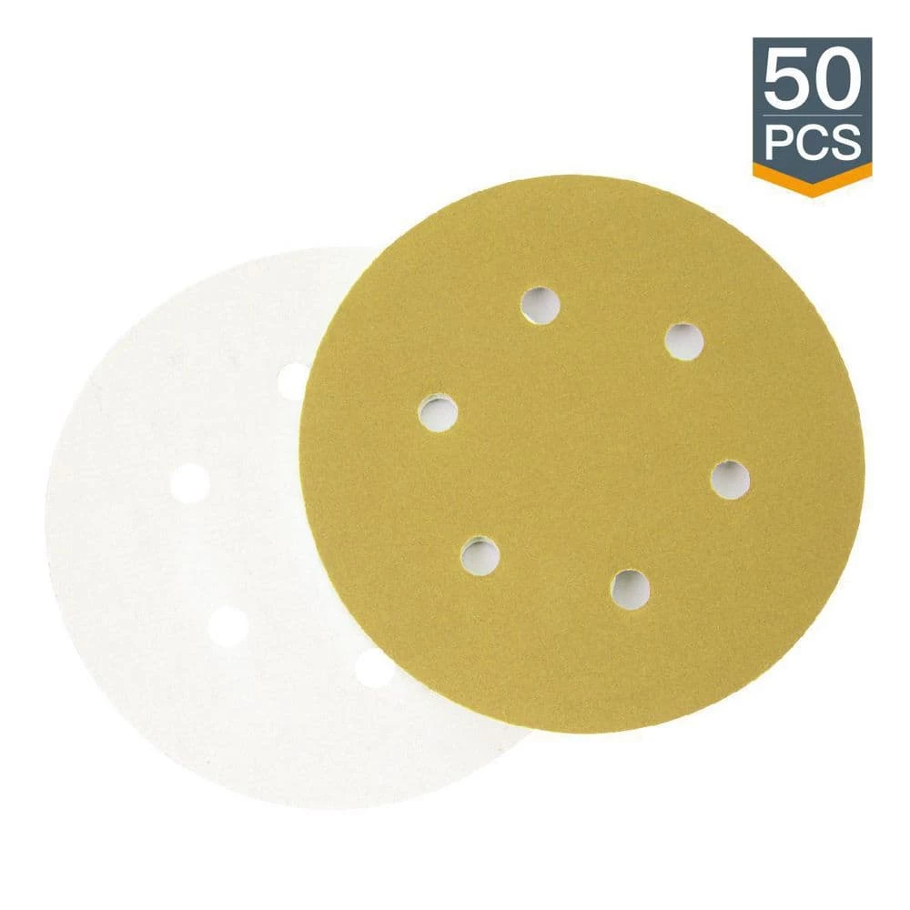 - INCLUDES: (50pc) 6 Inch Sanding Discs Hook and Loop (Gold)