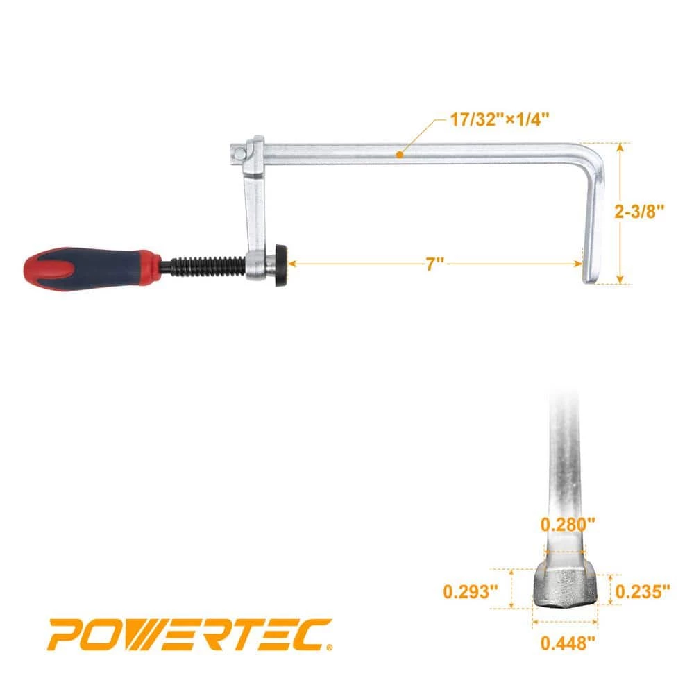 Introducing the Quick Screw Down Table Clamp by POWERTEC. These well crafted clamps are designed to hold your projects down quickly and securely for all sorts of applications. When utilized with your Festool MFT table or guide rail system, these clamps work efficiently with holes and channels while offer unlimited positioning helping to secure your work pieces and scrap wood for sanding, precision cutting, routing and more. You will find that these clamps are made with premium quality material and provide a reliably sturdy performance. Whether you are a professional carpenter or woodworking enthusiast, these handy tools are easy to set up and flaunt an impressive amount of clamping power. SCREW DOWN CLAMP: Unlike the trigger type, this manual screw down clamp provides more of a hands on approach to executing a tight, snug fit on your work material. The clamping grip is made out of heavy-duty plastic and features an ergonomic design for comfortability. The clamp is fully adjustable and gives you the ability to apply proper pressure/force where needed, while producing the results you desire. In addition, you can take advantage of the steel pressure pad that features removable, non-marring plastic. COMPATIBILITY: Ideal for use with Festool, Makita and Dewalt track saw guides and MDF work tables. CLAMP SPECIFICATIONS: Clamping Capacity: up to 350 lbs./Throat Depth: 2-3/8 in./Clamping Thickness: 7 in./Through Groove Insertion Size: 15/32 in. x 5/16 in.
