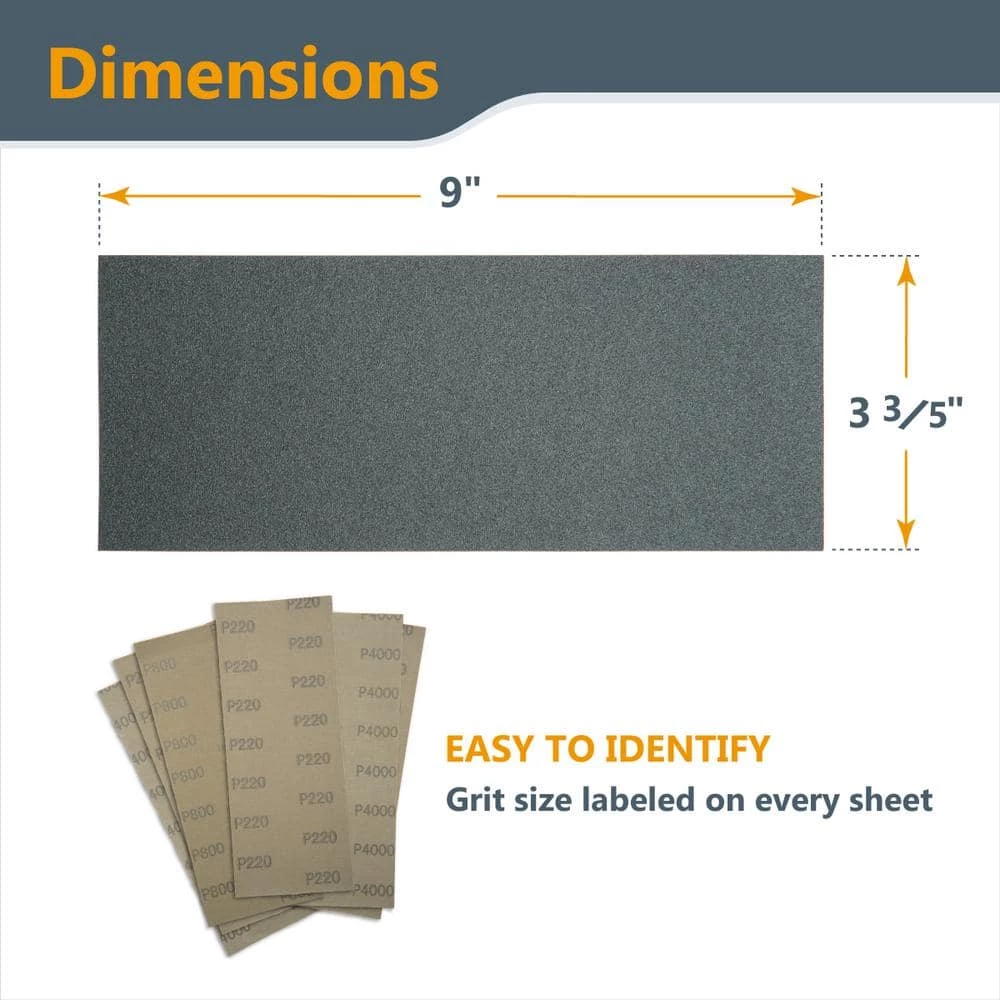 - INCLUDES: 36 piece dry wet (9″x3.6″) sandpaper set / Item# 471001