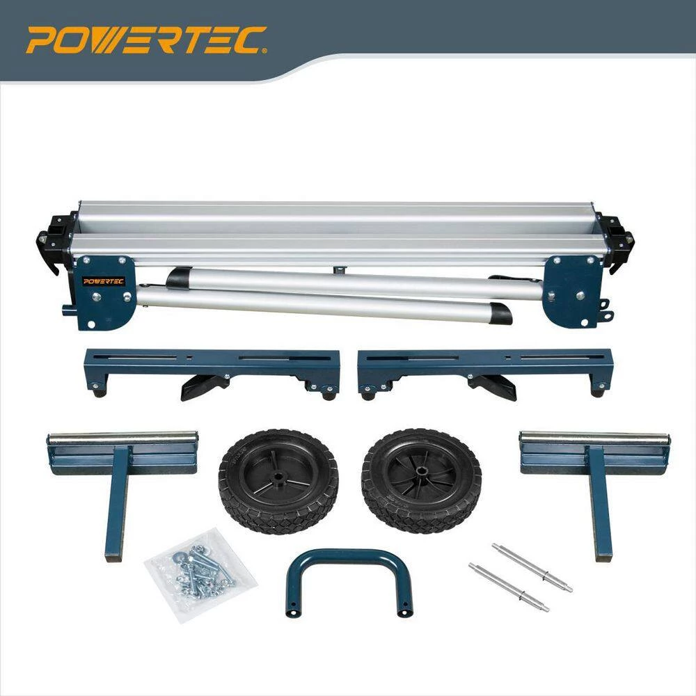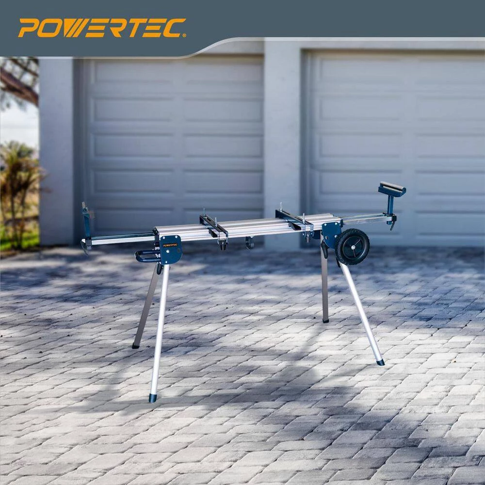 The POWERTEC Compact Miter Saw Stand MT4004 is your ultimate benchtop tool workstation solution. This lightweight but solid Saw Stand offers you convenient work stand mobility, as well as the essential workbench stability you count on to support you to get the job done. You can set up shop with this handy workstation wherever and whenever you desire, quickly and easily. This versatile, multi-featured stand covers all the bases. The top of this premier stand is constructed of high-quality extruded aluminum for the utmost in strength and durability. The included quick-release bracket mounts allow you to easily attach most bench-top tools. Miter saws, portable thickness planers and other machines with universal-dimension specs will fit securely to this premium stand. And set-up is a cinch. Simply activate the handy lever mechanism to efficiently lock spring-loaded stand legs securely in place, thus allowing for both a quick assembly and a solid work foundation. Firm-grip rubber-stop feet further enhance crucial stand integrity. The streamlined feed system is the pinnacle of adjustability and dependability. Extendable stock feed-rollers that also customize for varying heights will smoothly move work material along the stand’s length, and can support a total weight of up to 330 lbs. Roller supports have a vertical adjustment of 5-1/2 . 【Product specifications】 Height: 33-1/4 in., Extended Width: 68-1/2 in., Maximum. Load Capacity: 330 lbs.